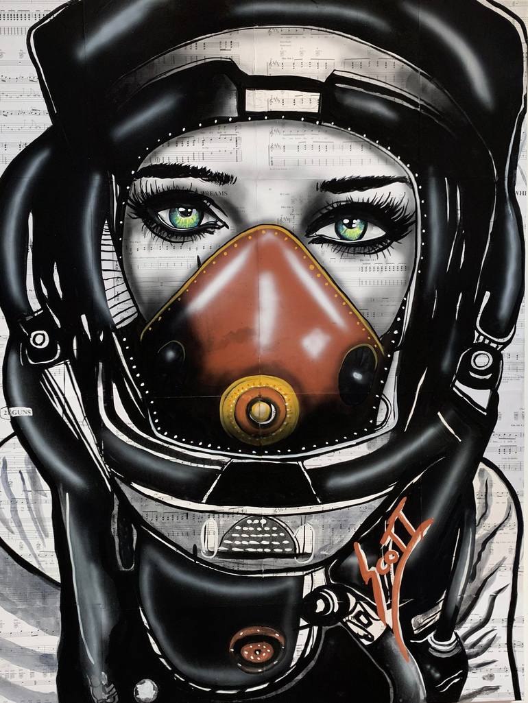 What will life be like after........? Life? By BRANDON SCOTT Gouache on sheet music over canvas 30 by 40 inches / 76.20 by 101.60 cm