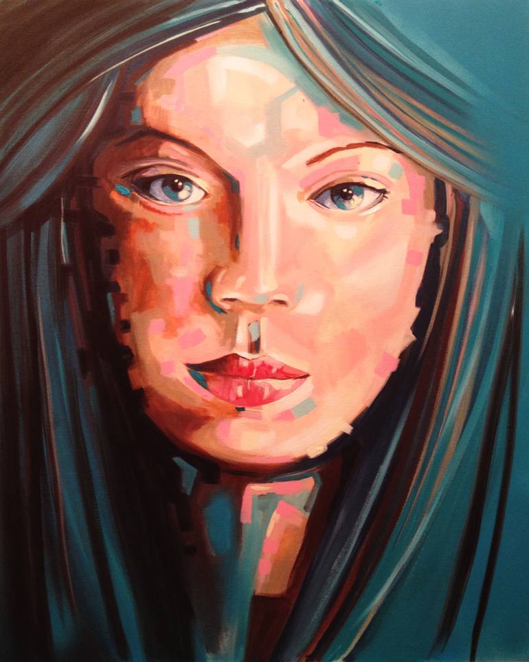 Original expressionit portrait acrylic on canvas stretched 81 x 65 cm ( 32 x 25.5. inches) The artwork play with unusual colour and a light deconstruction of the line of a girl potrait . pretty large sized for a close up portrait , the various strong colour make this painting very decorative . The ...
