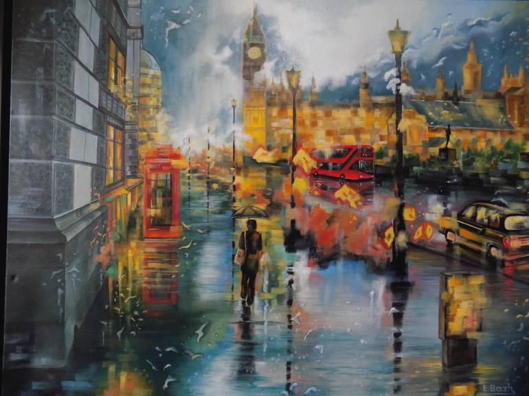 I have always been inspired by light, reflections and the illusion of the fire on the wet road. It has been so fascinating to create this piece of Art with addition to my other London cityscape paintings. I am almost lost in the beauty of London after the rain. I believe that only Oil on canvas can ...