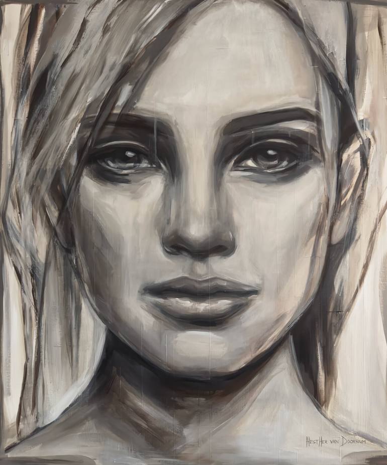 Hesther van Doornum BA (1973) | Independent Contemporary Artist | Curated member of the NABK (National Association of Expressive Artists | Curated member of the BKKC (Brabant Knowledge Centre for Art & Culture) | Member of Pictoright. Hesther works freely, autobiographical as well as on commission. Her work is included in both business and private collections around the world. "Powerful, sensual women who are not frightened to show their vulnerability. These are the women on Hesther van Doornum's canvases. "˜This is me' they seem to proclaim. Hesther: "A woman who dares to be herself is wonderful to behold, balanced in body and spirit. The open attitude of my models radiates vulnerability as well as strength. This is enhanced by their transparency. The characters flow as it were, into the background. You can say that for me these faces are my canvasses; the landscape of women." Hesther has been passionate about drawing and painting since she was a child. Her first work, however, was inspired by the many drawings she had to do from models at college. In the course of the years Hesther's work has developed from a figurative style to a more abstract approach of her subjects. "I believe Art is born by imagination. Of course it also needs knowledge and curiosity and other aspects but without inspiration, something that comes from outside the consciousness of the artist, an artwork becomes hardly mediocre. I dream, read, hear, think, feel, see and start painting." People, particularly women, are a key element in her paintings. The choice of subject, expressive use of colour, composition and clearly visible strokes make her work a symbiosis of reason, feeling, sensuality and symbolism . Her work fascinates the observer, it is gripping and stays in your thoughts. "For me every painting is an achievement when I succeed in painting real, soulful women; when I succeed in capturing a moment in time, to make it count for ever."