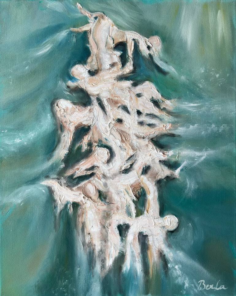 I spontaneously created this abstract work and the bodies have texture. I was inspired by Milan Kundera's book's name "Unbearable Lightness Of Being".