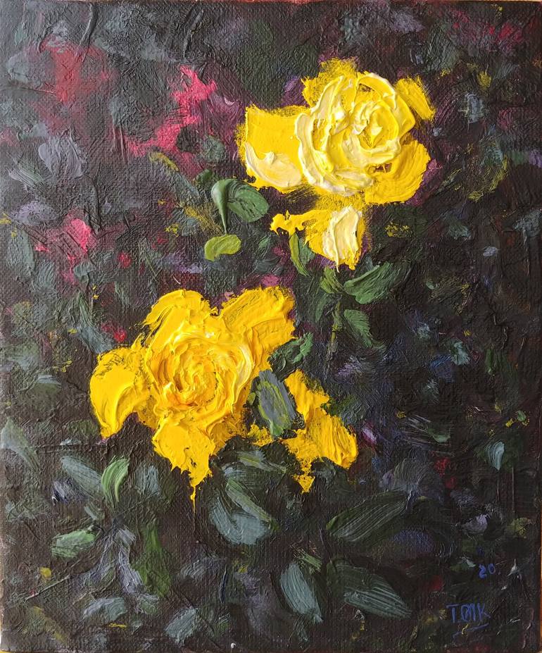 Original oil painting full of rich and yummy textures by artist Olena Tymoshchuk "Lights" 24 X 20 cm Canvas, oil Signed on the front and back Dated 2020 Beautiful roses inspired me to write this work. An original painting will bring an amazing atmosphere to your space. The painting is charged wit...