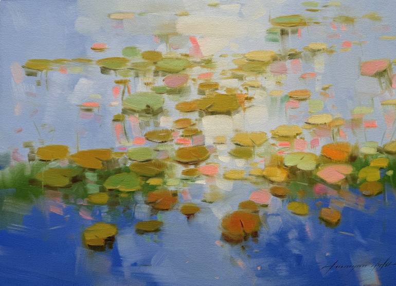 Artist: Vahe Yeremyan Work: Original Oil Painting, Handmade Artwork, One of a Kind Medium: Oil on Canvas Year: 2024 Style: Impressionism, Title: Lilies, Size: 15" x 21" x 0.8'' inch, (38x53x2 cm), Unframed, Stretched on Wooden Bar, Gallery Wrapped, Ready to Hang. Yeremyan is an American Arm...