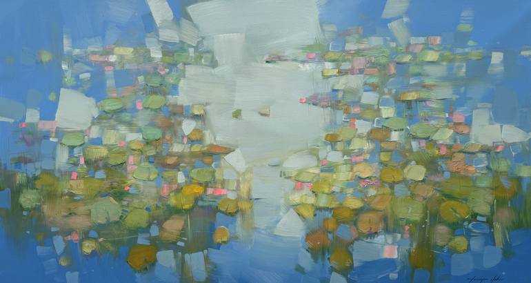 Artist: Vahe Yeremyan Work: Original Oil Painting, Handmade Artwork, One of a Kind Medium: Oil on Canvas Year: 2025 Style: Impressionism, Title: Lily Symphony Size: 29.5" x 56" x 1'' inch, (75x142x3 cm), Unframed, Stretched on Wooden Bar, Gallery Wrapped, Ready to Hang. Yeremyan is an Americ...