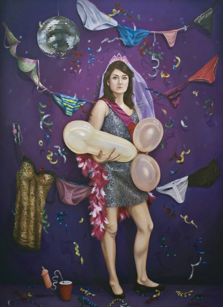 Limelight, Spotlight, G-Spot, Oil on Canvas, 68" x 50", 2013. Painted after historical masculine power portraits and a portrait of Louise Bourgeois by Robert Mapplethorpe. Signed on the back, stretch canvas is handmade, ready to hang, wrap around canvas.