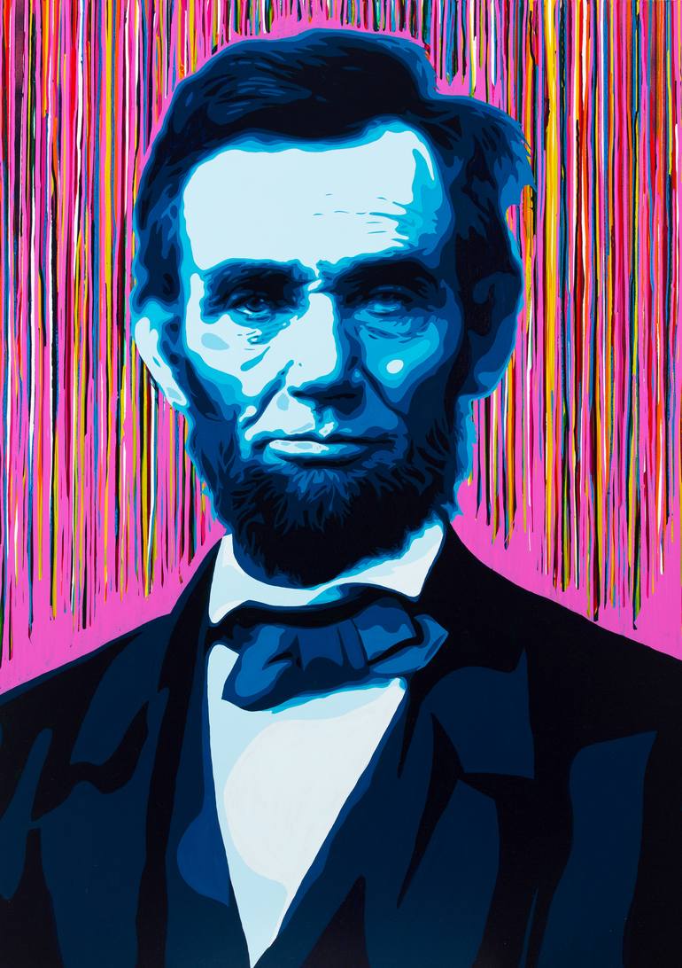 Artist: Jeremy Penn Subject: Abraham Lincoln Materials: Acrylic on Handcrafted Birch Panel Modern portrait of iconic President Abraham Lincoln.