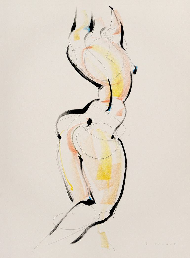 Gestural painting is a most rewarding challenge. The painted line cannot be changed once it has been made. The quality of the brush strokes are critical to the overall expression of the image. Each model has their own lines and rhythm within their body. I love finding the lines that best match t...