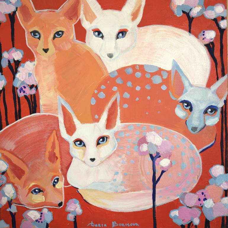 “Lingonberry” Acrylic on canvas 20 x 20in The artwork is sold unframed The sides are colored the same pattern as the painting. I depict the natural world, in which plants and animals form a pictorial image of a single organism. It reminds me of an ark (maybe Noah's ark) as a phenomenon of a commu...