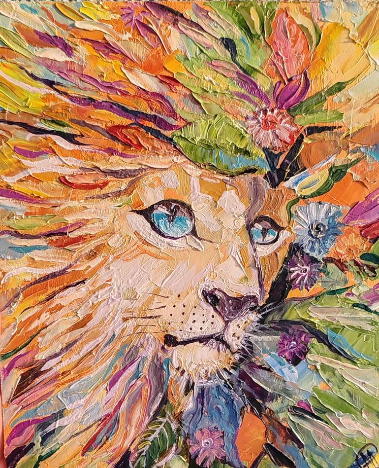 Lion Painting Abstract Animals Original Art Big Cat Artwork Gifts 9.5" by 8" Artwork Impasto African Safary Painting by SkorokhoArtLine This is 100% original art, it's not a print or a copy! Painting: Oil on Canvas. 🎨Size of this Art : 20cm X 22cm 8" X 9.5" oil paints, cardboard, palette knife, bru...