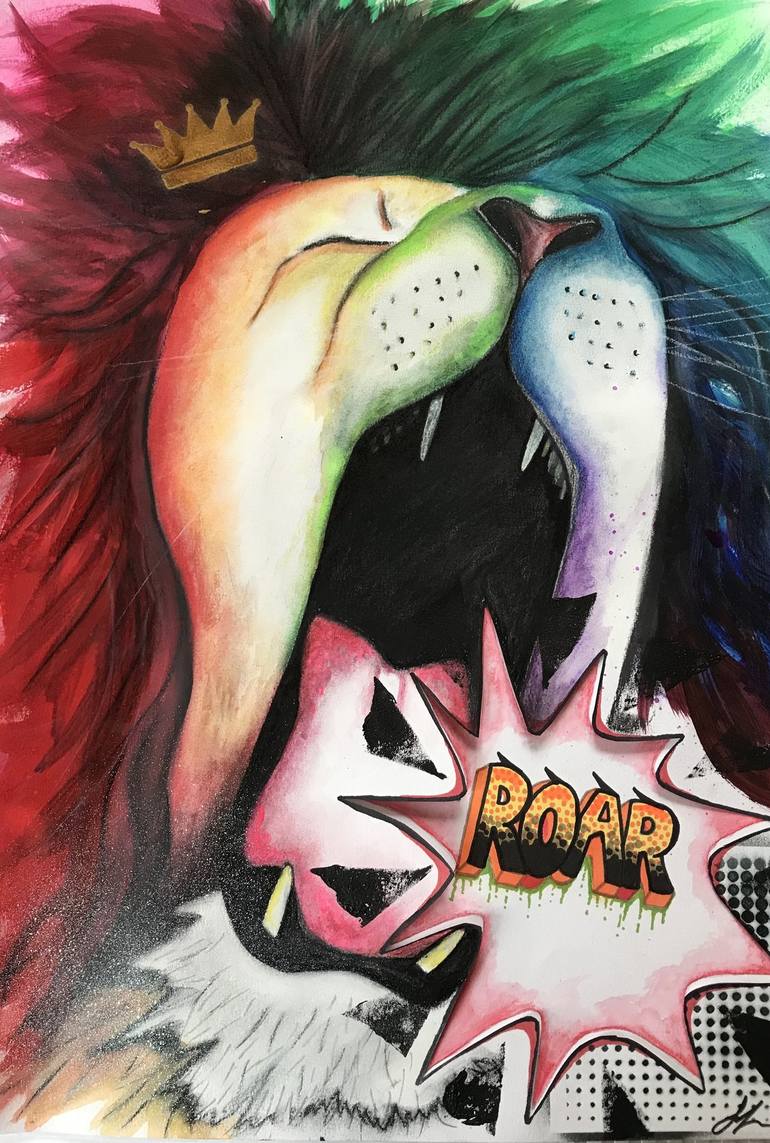 The artists that have influenced my latest work are; Patrice Murciano and Banksy. Along with my interest in pop art and the graphic style, I was inspired to create this piece due to my love of animals and rainbow! I love the wild, untamed nature of the lion. It is majestic and regal. Therefore, I lo...