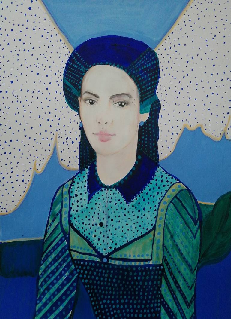 Acrylic, pencil and ink on acid free paper. This picture is a part of my portrait series.