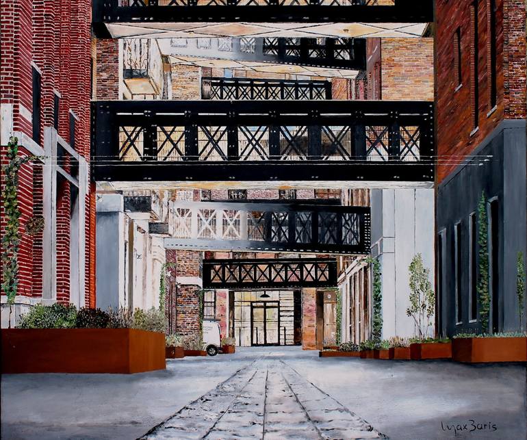 « It's how to catch the rhythm of daily surroundings. » Max Baris is a Netherlands painter focused on urban landscapes and industrial objects. His work explores how urban structures present differently between various cities. Painting in oil on canvas, his works suggest or show the presence of people, though inactivity and emptiness reign. Max Baris takes you to distant destinations, inviting you to fantasize and look behind the paint.