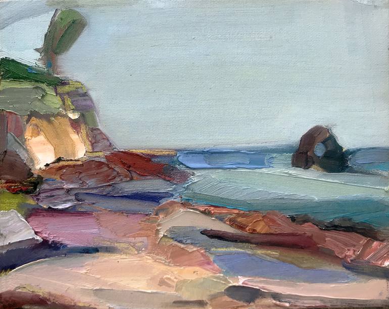 This painting was done on site at Little Corona Beach in Newport Beach, CA. It is a Plein Air painting done alla prima (Italian, meaning at first attempt). Alla prima a painting technique in which layers of wet paint are applied to previously administered layers of wet paint. When working this way I...