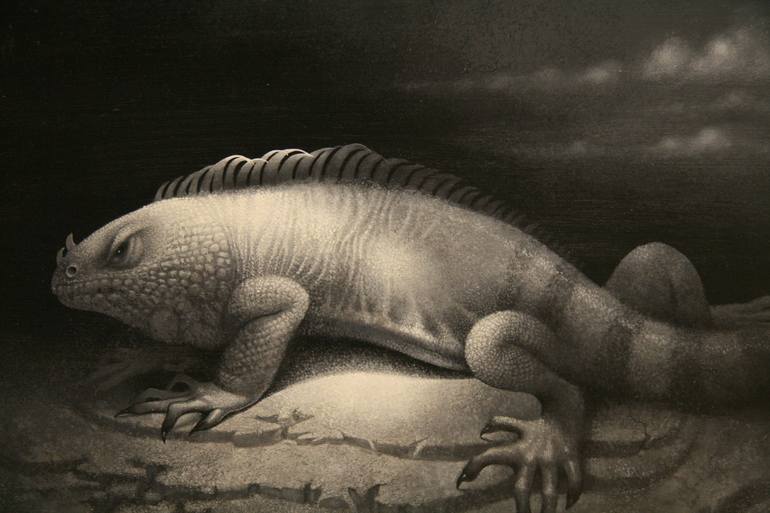 Barbara took inspiration from many places in her life including her love of all animals. This piece is one of a series culminating in Big Lizard a large format oil painting.