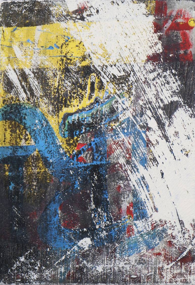 Originally a test of newly reclaimed paints (you will see these colours appearing in numerous other later paintings) I have become very fond of this piece, its diminutive size, and layerings of colour and energetic texture. The format references the graffiti layered streets of neighbouring Lewisham,...