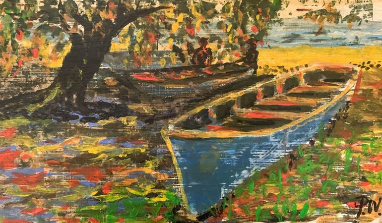 The local colorful fishing boats in Puerto Viejo, Costa Rica you see when walking downtown along the caribbean ocean. This image captures the magic of Costa Rica, so full of promise with its pristine white sand beaches, lush jungles & abundant wildlife inspires travellers to follow. Print Art- Cod...