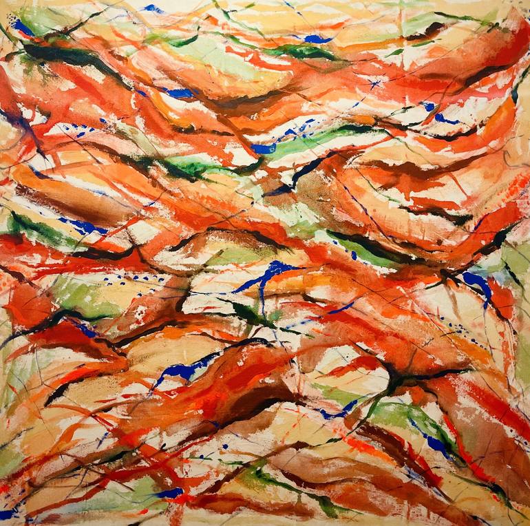 "Living Planet - Land" is an abstract art work with an overall color tone of orange-red. The lines and colors are harmonious and unified, giving it a feeling of traditional ink painting. This piece showcases a mysterious and dynamic landscape. The flowing, intersecting lines outline the contours and...