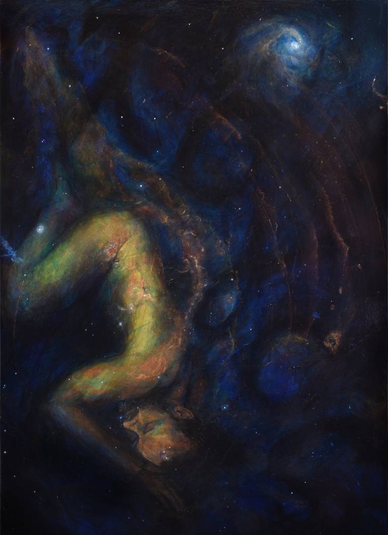 This work is one of the first of the Sleep series to not involve physical performers. Hamish Alcorn owns a landmark Brisbane bookstore and considers himself a servant of λόγος, Logos. He is painted here dreaming amongst the stars above him when he was born and at the same time above the eastern coas...