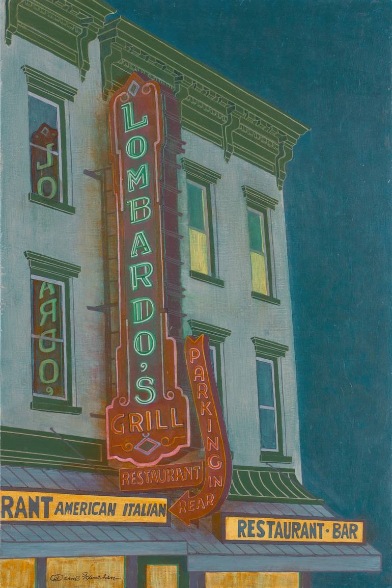 As night approaches, the illuminated neon sign of an Italian restaurant shines brightly. Lombardo's permanently closed after dinner service on New Year's Eve, 2018. Its centennial would have been next year. The interior looks ready to host a restaurant scene from a movie set in the 1930s or ’40s. S...
