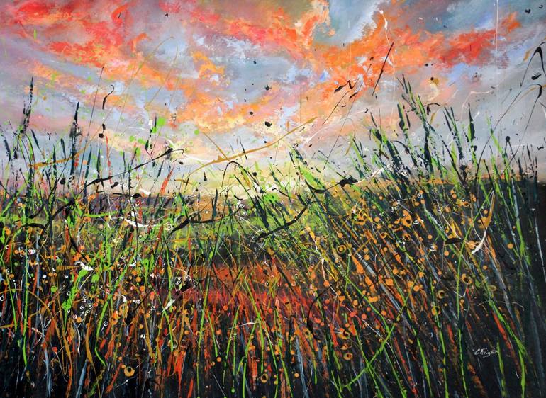 Cecilia’s artworks are lively and buoyant with explosions of colours and freedom which mirror the intensity of her own view of the natural sceneries. She is a real creator and inventor always seeking new forms of art and techniques to express her inner self. Her paintings generate from memories and visions that flow onto her canvas instantly leaving enough freedom for the viewer for their own interpretation. She specialises in large contemporary atmospheric landscapes and super-sized floral compositions using her unique abstract techniques as well as more organic and intimate abstractions. Her large scale paintings combined with her unique free-flowing abstract techniques have brought her great recognition and her works have been selling all over the globe to private collectors and for interior design projects. Born and raised in Italy but upon receiving her degree in Painting from the Bologna’s illustrious Accademia Di Belle Arti Cecilia moved to London,UK and over the years she established herself as a full-time independent artist. Currently lives and works in rural Hungary where she solely focuses on her art practice. She is a very approachable character and enjoys engaging and working closely with her clients let them be private home owners or interior design specialists.