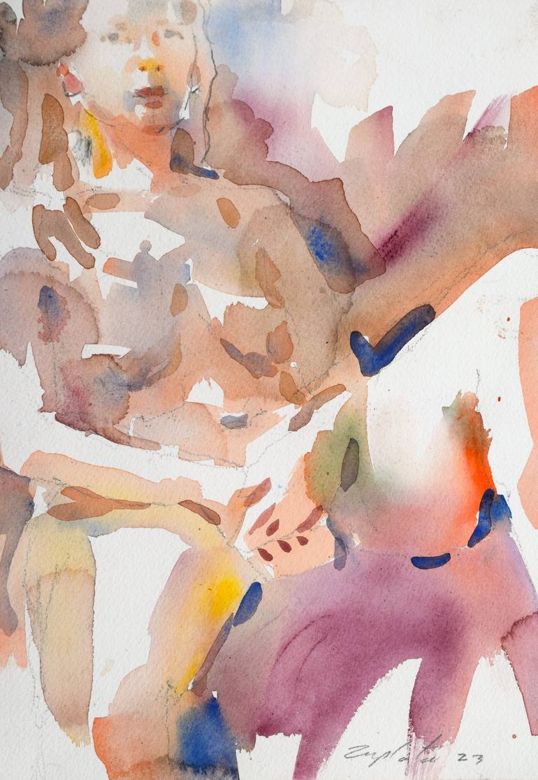 Water color on 140# Arches watercolor paper. Painted in a life drawing session