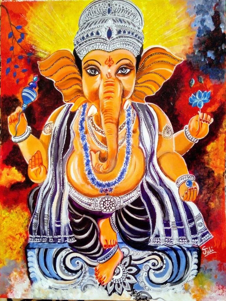 Lord Ganesha inspires every Artist The grandeur of Ganesha will cast a spell on everyone who looks at Him. His blessings are absolutely necessary to be successful in every aspect of life. I love to explore and experiment with colors. So I chose Lord Ganesha portrait to start my journey with Saatchi...