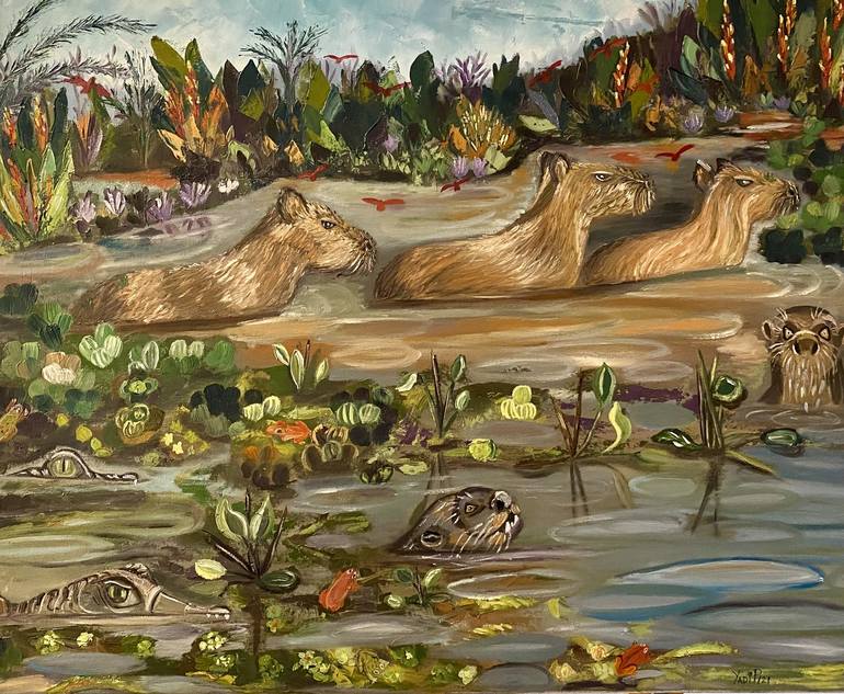 I wanted to pay tribute to the Chiguiros since this animal is in danger of extinction due to the spillage of polluting chemicals that reach these lakes generated by oil companies in this region.