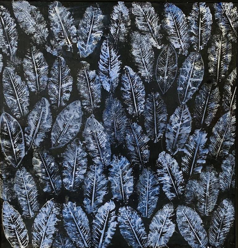 "Whisper of the Night" is a stunning piece featuring a cascade of vibrant blue feathers set against a stark black background. The artist meticulously used acrylics to highlight the delicate details and subtle variations of the feathers, ranging from rich cobalt to soft cerulean. The stark contrast c...