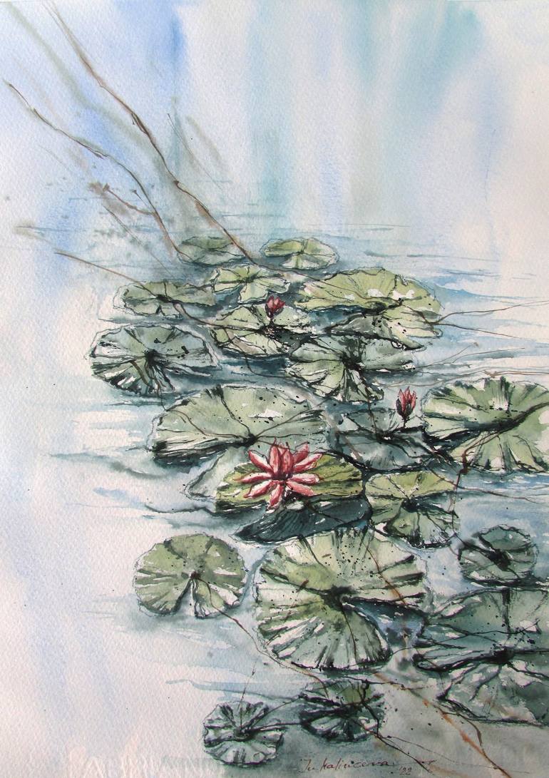 This painting is from my tropical series. I brought this plot from a trip to the magical Hainan island. The beauty of tropical lakes and ponds full of lotuses and water lilies amazed me. And I convey these emotions and impressions through my painting. This work is my original watercolor painting an...