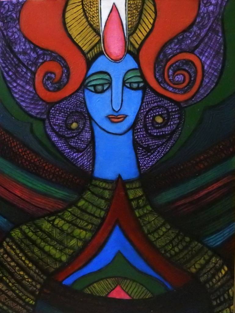 Here lotus is a symbol of Lord Vishnu , who holds the lotus in his hand and his wife Goddess Lakshmi rests herself on lotus also. In this painting the presence of lotus petal in the "Tilak" of his forehead and in the core of his heart defines the beauty and divine fragrance of lord Vishnu.