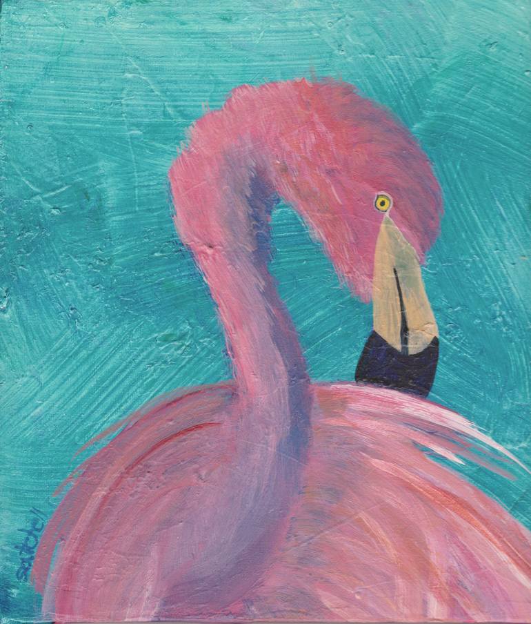 Painting - Acrylic on canvas. Louis is one of my beloved flamingo paintings. I did these shortly after moving to Florida from Nashville, loving the whole tropical scene and needing to incorporate the old Florida vibe into our home's decor.