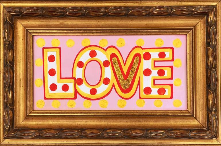 Love 1st This is a beautiful piece from the Hearts serie. Boho and romantic style. A little treasure with a heart made of gold glitter... It comes with a vintage wooden golden frame, ready to hang. With the frame the total size is 19 W x 13 H X 2 D inches (48 x 32 cm x 5 ) Signed and dated on ba...