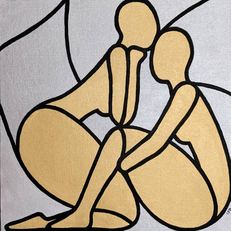 This painting is part of a series portraying the love between two women, the affection. It is sensual without being sexual. The lines formed by the bodies are created to convey harmony and balance, and connection. The absence of features makes them anonymous but at the same time allow one to identif...