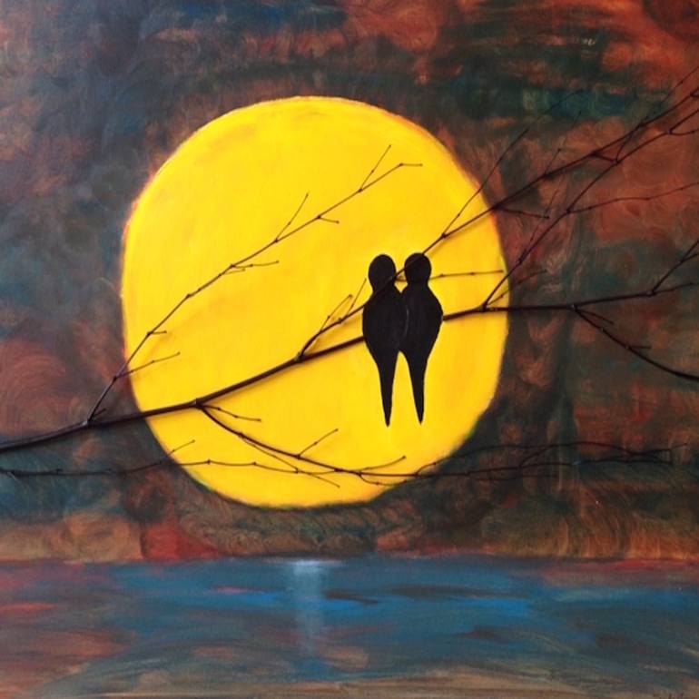 The original painting is a gift to my son and his wife as a house warming gift. Finally they could lay down roots after traveling in the Military for so many years. Two love birds able to relax and enjoy one another.