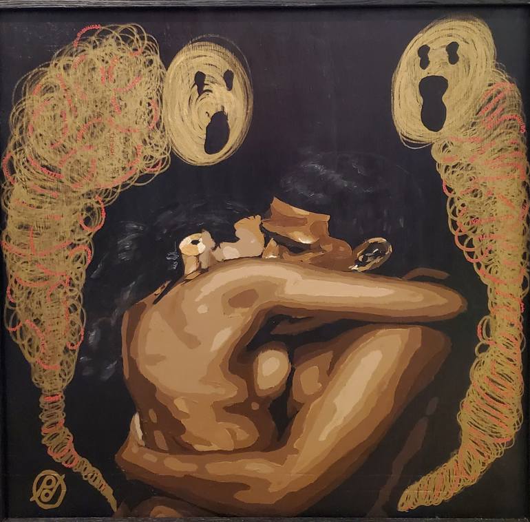 This piece is framed and ready to hang. It was painted on treated plywood. Love inspired me to create this piece. Throughout my relationships, I've had insecurities surface. These insecurities made it difficult to love and to be loved. But the more I worked through and overcame these insecurities...