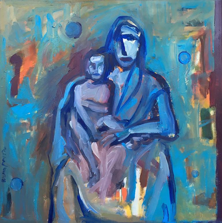 Holiday season brings on nostalgia for the familiar and familial; each holiday season I try to make a painting that captures the holiday spirit for me. Blue ia universal theme, my expressionist style and thick brushstrokes give it a textured and interesting appearance.