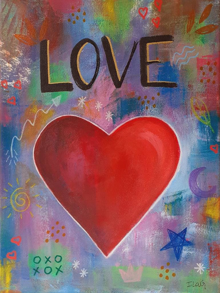 I have painted this cheerful painting full of colors with a heart to give light to any space and at the same time, to remind us necessity of love in the world. The large central heart symbolizes the importance of feeling love everyday. This picture is painted with a mixture of acrylic paint and mar...