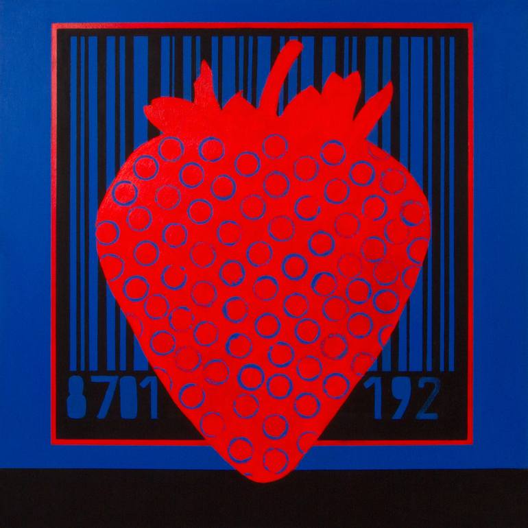 Painting this fruitful strawberry, I was trying to emphasize on it’s sexuality. It seems to me that, strawberry is a symbol of temptation and sex. Combination of blue and red is a fascinating mix of strong desire and enjoyment. Deeper meaning of canvas is hidden in a bar code. This long number rep...