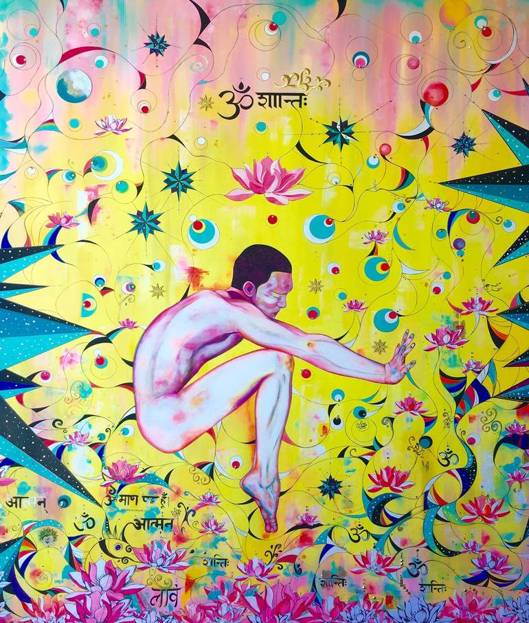 Lucha de gigantes es una obra basada en el yoga. Representa la lucha de la mente para alcanzar una quietud a través de la meditación, la dificultad de abstraerse de la vorágine de la sociedad actual. Está realizada con acrílico, tinta, bordados con hilo metalizado oro, cristales de swarovski, tachue...