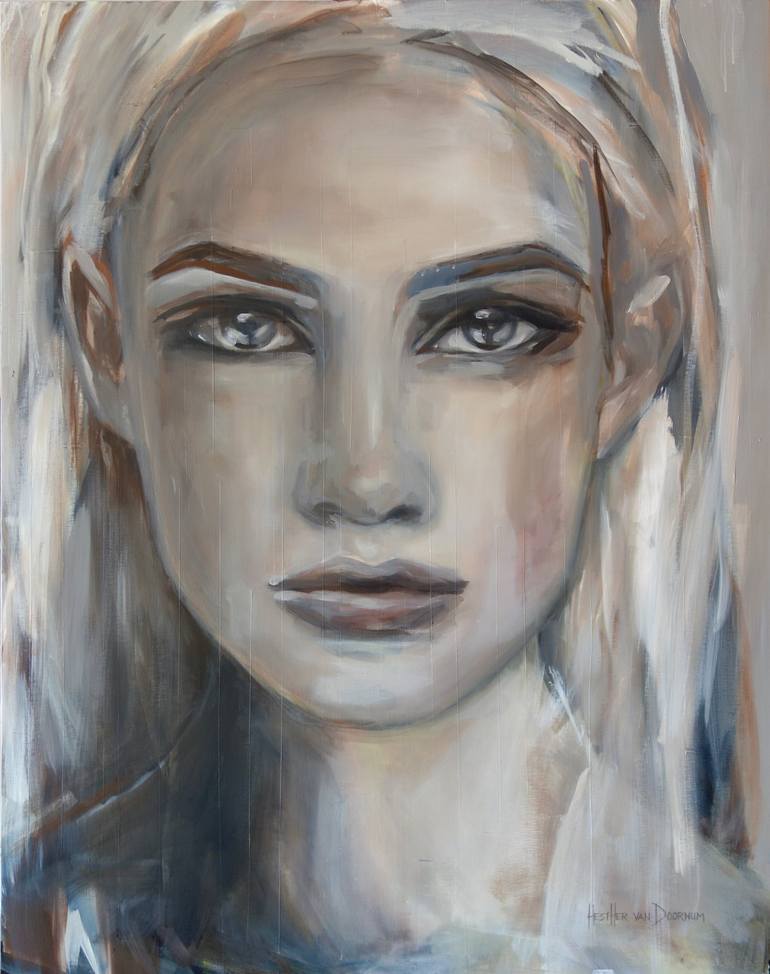 Hesther van Doornum BA (1973) | Independent Contemporary Artist | Curated member of the NABK (National Association of Expressive Artists | Curated member of the BKKC (Brabant Knowledge Centre for Art & Culture) | Member of Pictoright. Hesther works freely, autobiographical as well as on commission. Her work is included in both business and private collections around the world. "Powerful, sensual women who are not frightened to show their vulnerability. These are the women on Hesther van Doornum's canvases. "˜This is me' they seem to proclaim. Hesther: "A woman who dares to be herself is wonderful to behold, balanced in body and spirit. The open attitude of my models radiates vulnerability as well as strength. This is enhanced by their transparency. The characters flow as it were, into the background. You can say that for me these faces are my canvasses; the landscape of women." Hesther has been passionate about drawing and painting since she was a child. Her first work, however, was inspired by the many drawings she had to do from models at college. In the course of the years Hesther's work has developed from a figurative style to a more abstract approach of her subjects. "I believe Art is born by imagination. Of course it also needs knowledge and curiosity and other aspects but without inspiration, something that comes from outside the consciousness of the artist, an artwork becomes hardly mediocre. I dream, read, hear, think, feel, see and start painting." People, particularly women, are a key element in her paintings. The choice of subject, expressive use of colour, composition and clearly visible strokes make her work a symbiosis of reason, feeling, sensuality and symbolism . Her work fascinates the observer, it is gripping and stays in your thoughts. "For me every painting is an achievement when I succeed in painting real, soulful women; when I succeed in capturing a moment in time, to make it count for ever."