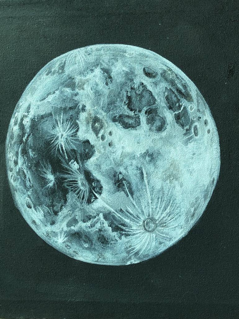 Full moon inspired full moon painting with all it’s flaws highlighted to change the perspective of flaws because they can be beautiful Scars can be beautiful I choose acrylic to paint this beautiful painting I call in “ in love with your flaws luna”