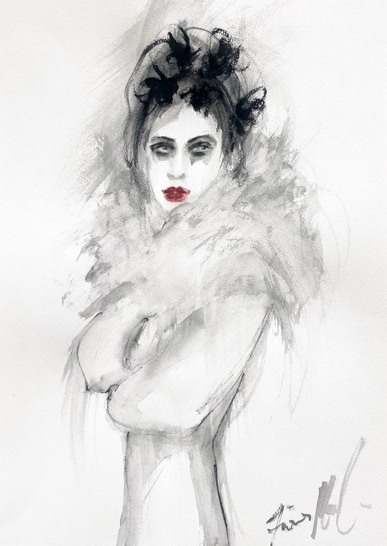 Luna - watercolour on watercolour paper. 11.5in x 16.5in. Original. Comes with a handwritten thank you note and a certificate of authenticity. She was inspired by a fashion photograph which morphed into something else, Luna. With the sun, Soleil, another watercolour painted at the same time in my ne...