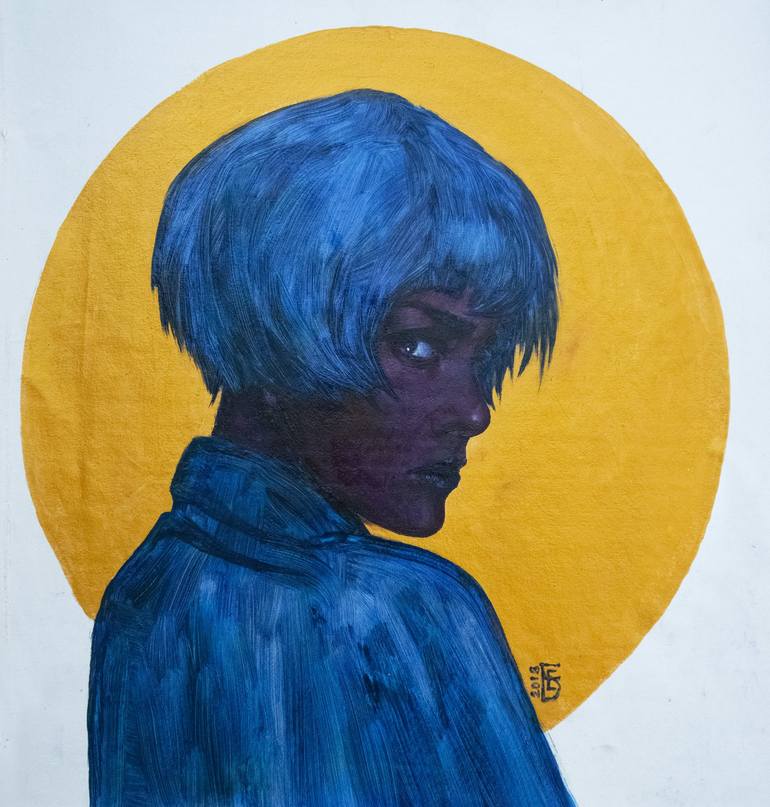 Original oil and acrylic painting on canvas with gold acrylic paint