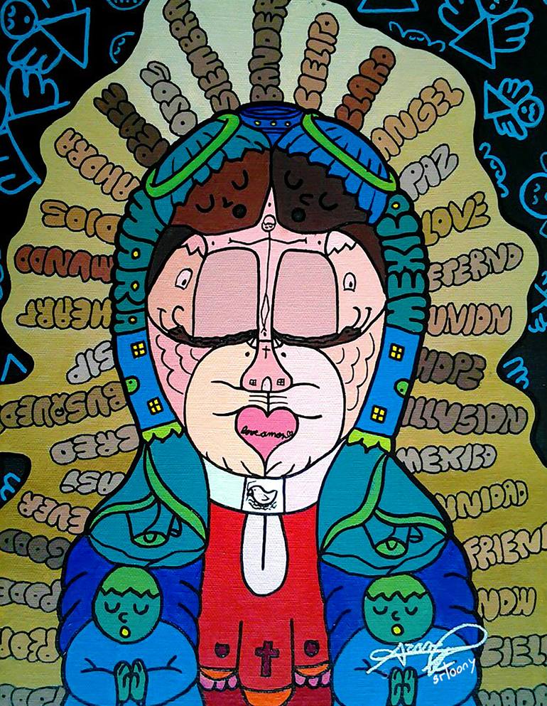 This version of the Virgin of Guadalupe is more simple in contrast to the other ones I've painted. A very important aspect for me is that the art I make can be understood by anyone, without limit of age, ideologie or genre. Within my artistics explorations, I’ve always tried to represent portraits i...