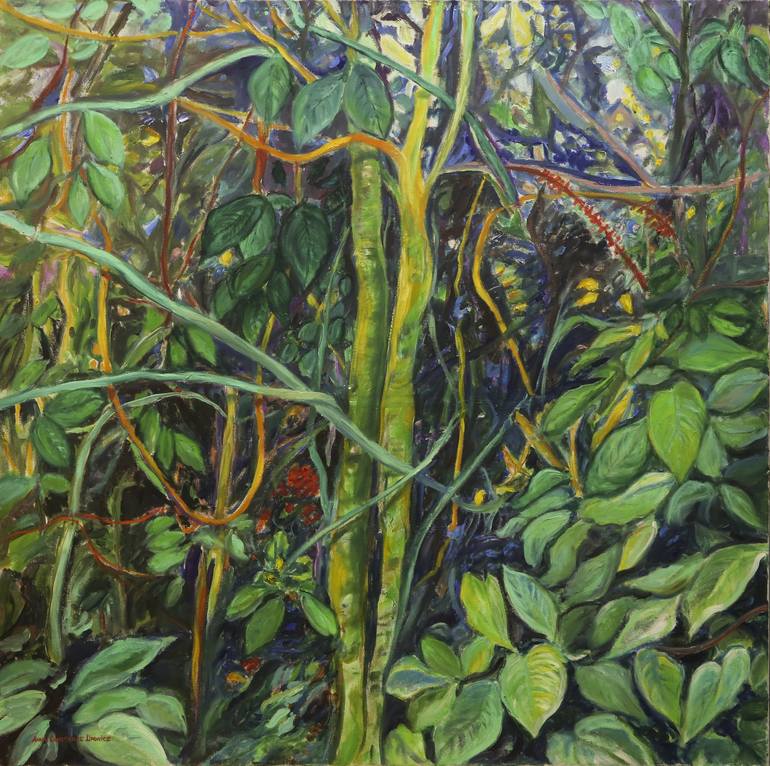 The striking abundance of life in the rainforest is what drew me to the subject, and compelled me to extract this overwhelming invisible life "force onto the canvas".