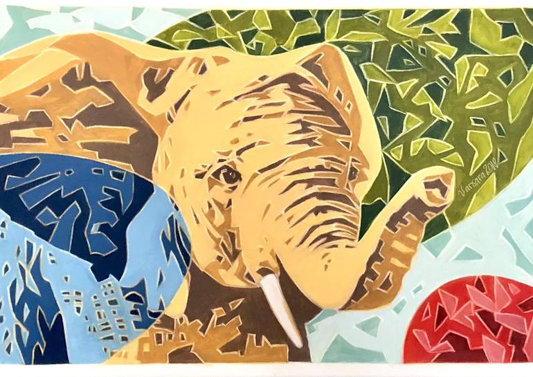 An African Elephant Lusty coming out of bushes . Colours reflect an African folklore
