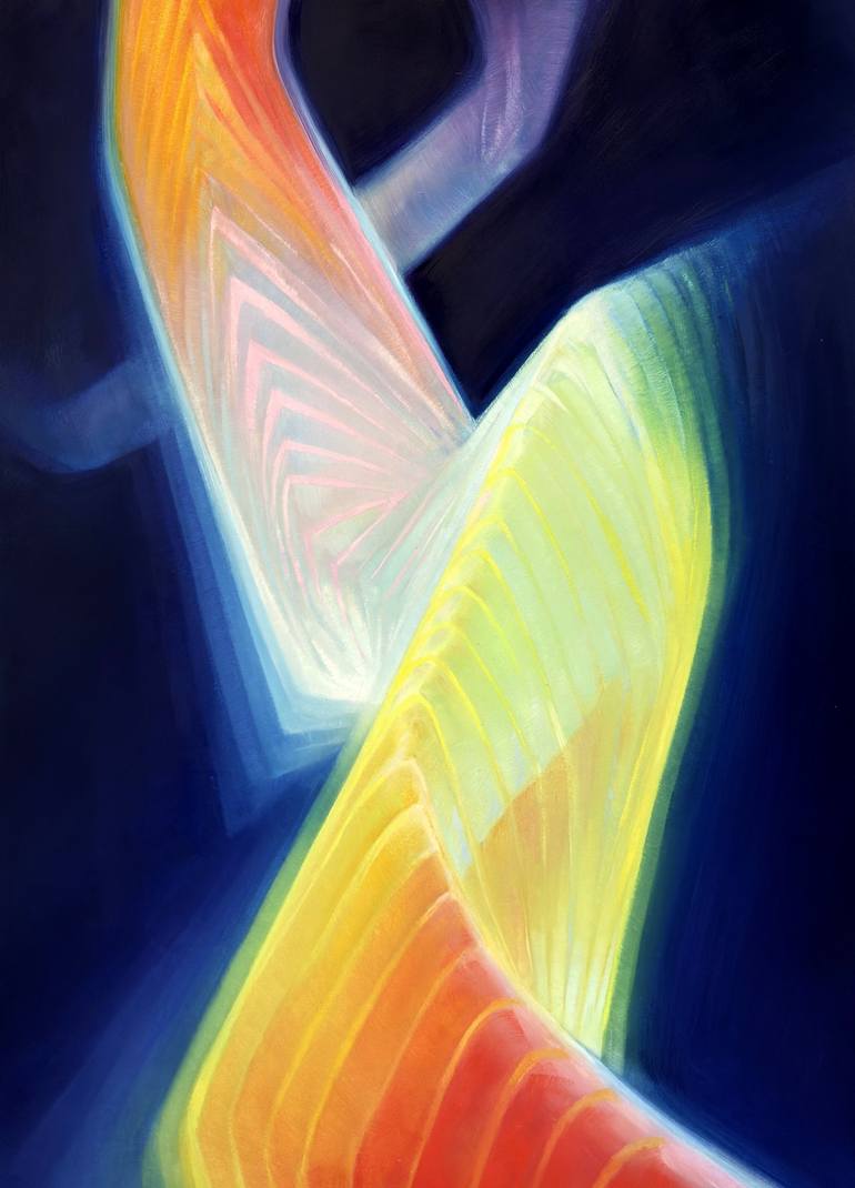 The image is inspired by the synesthetic experiences of Mongolian throat singing. The long, piercing and lively sound is like the luminous tail of a dragon, with a distinct texture and rhythm emerging from the dark space. Luu means dragon in Mongolian. I can also throat sing!