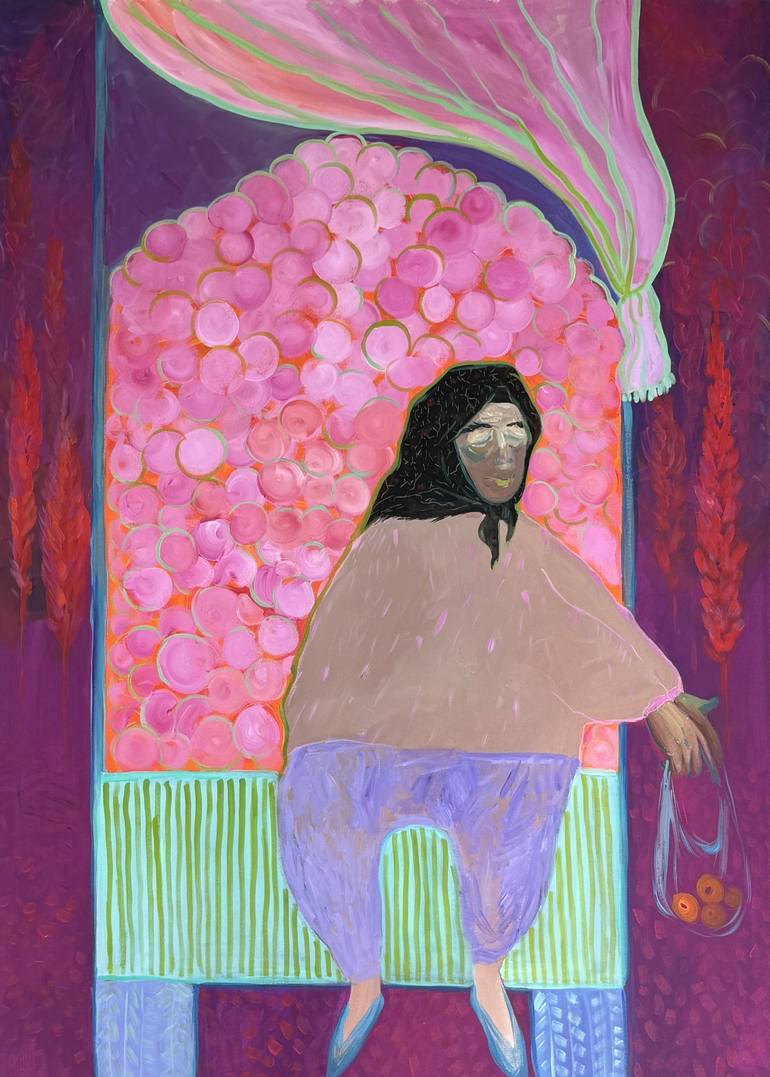 This painting is dedicated to a mandarin seller, symbolizing a woman as the guardian of the hearth. She protects, nurtures, and gives life. The bright mandarins in her hands represent the life she generously shares, as if offering her inner light and warmth. The vivid colors of the painting reflect ...