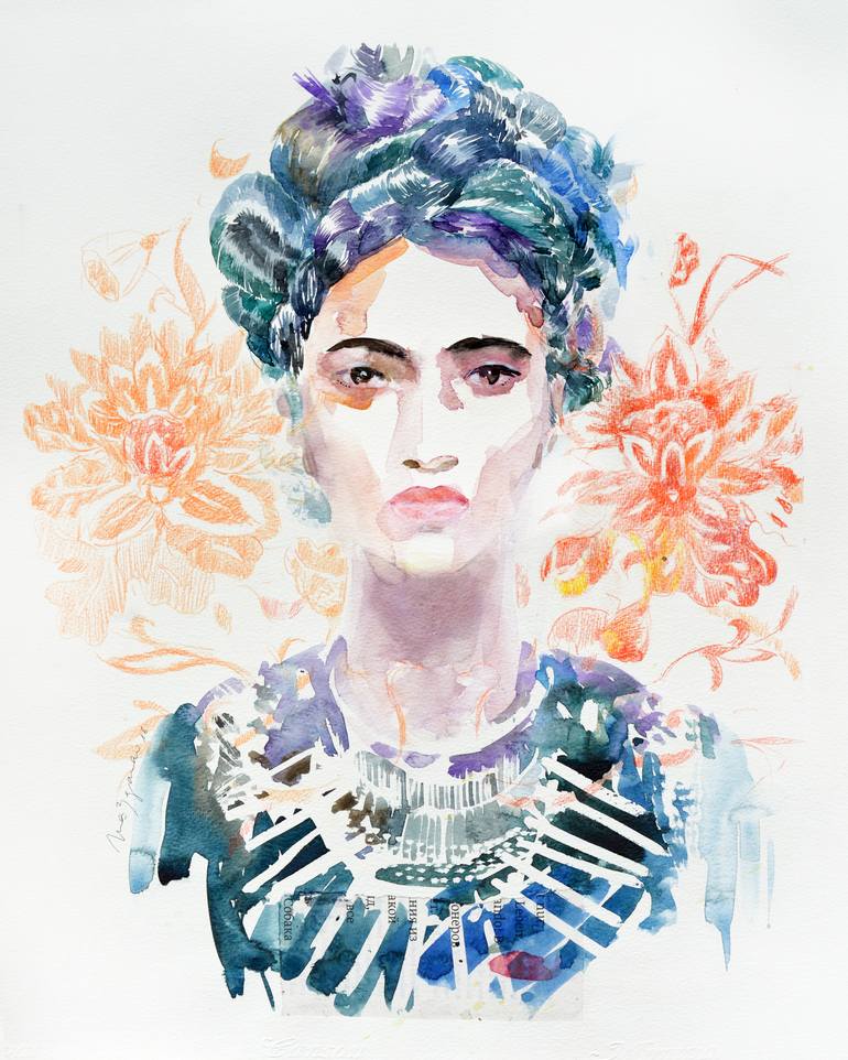 COLECCION MESTIZAJE “ MANUELA” World cultures / Culturas del mundo Watercolour , collague , pencils / Acuarelas, collague y lapices Canson paper 350 gr / Papel Canson 350 gr 15 x 19 in / 40 x 60 cm framed 50 x 70 cm /19 11⁄16 x 27 9⁄16 in Ready to hang