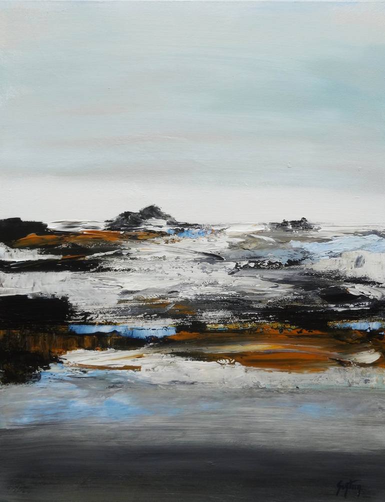Paysage de bord de mer à marée basse. Peint au pinceau et au couteau dans un style expressionniste et dynamique, il laisse l’œil du spectateur découvrir îles, sables, rochers, algues … et s’approprier le paysage. Les bords du tableau sont peints en noir, il est prêt à être accroché. La finition est ...